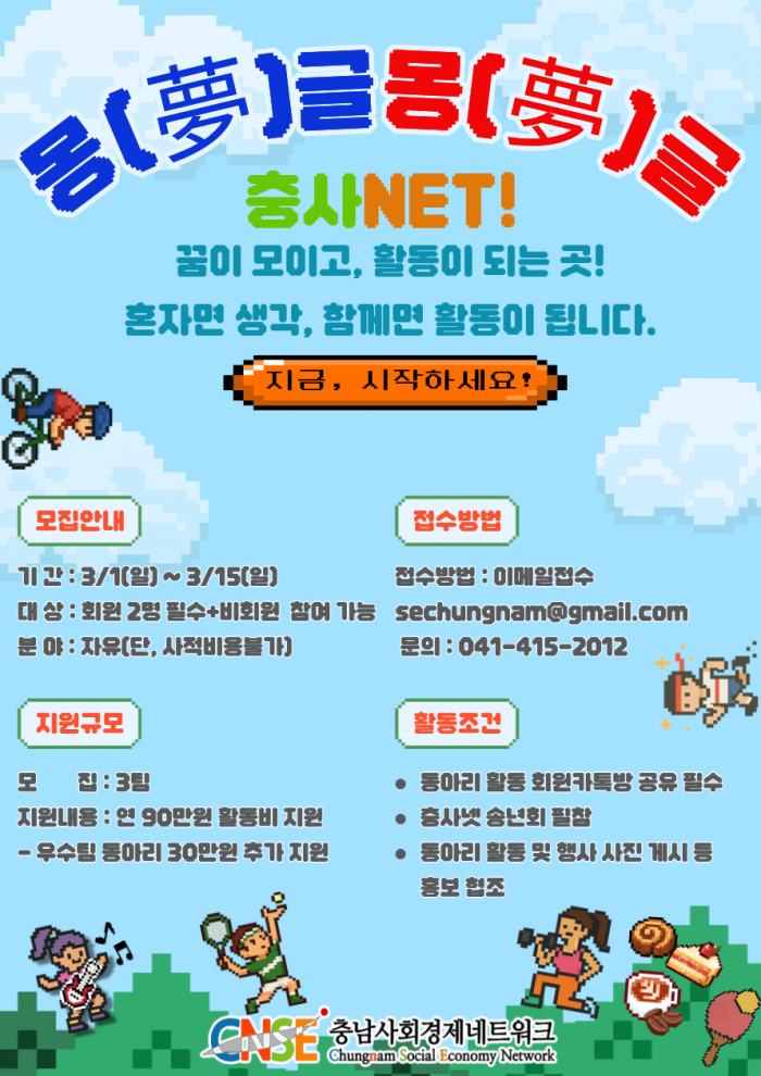 『몽(夢)글몽(夢)글, 충사NET!』 회원 동아리 지원사업 참가팀을 모집합니다.