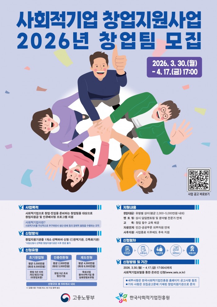 안녕하세요. (사)충남사회경제네트워크 입니다. 2026년 사회적기업 창업지원 창업팀 모집 사업공고와 관련하여, 충남지역 설명회를 아래 일정과 같이 진행할 예정이오니 많은 관심과 참여 바랍니다.